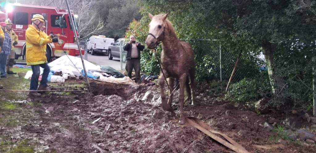 Due to the depth of the hole and in ability to safely lower personnel into the hole made this rescue very difficult. Fortunately rescue personnel were able to get a loop around the dogs neck after hours of trying and pull him out.