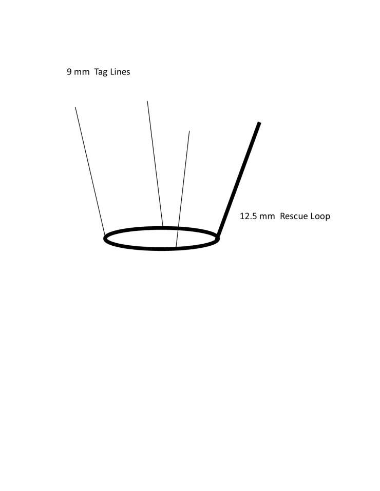 The Tag Lines will allow the Rescue Loop to be controlled and put into place. The Tag Lines will also prevent the Rescue Loop form being synced completely, so as not to constrict the animal. If weight is needed on the Rescue Loop, carabiners could be attached at the Tag Line attachment points.